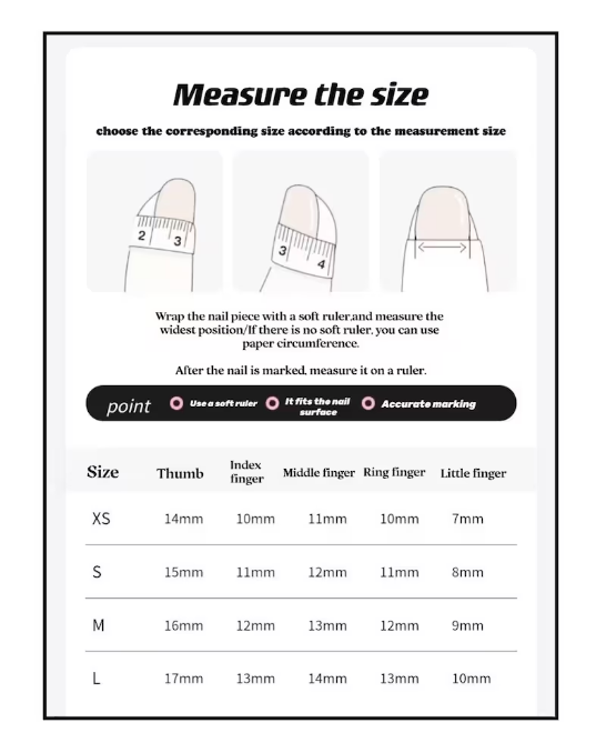 Avoid exposing the press on nails to excessive moisture or harsh chemicals. When washing hands or using water, recommended to wear protective gloves to extend the wearing time.